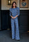 Pantalon large en tissu brodé 100 % coton bleu. Longueur cheville, il présente un ourlet ondulé unique, apportant du mouvement et une touche distinctive. Fermeture zippée et boutonnée sur le devant. À associer au haut Gardenia assorti pour un look élégant.